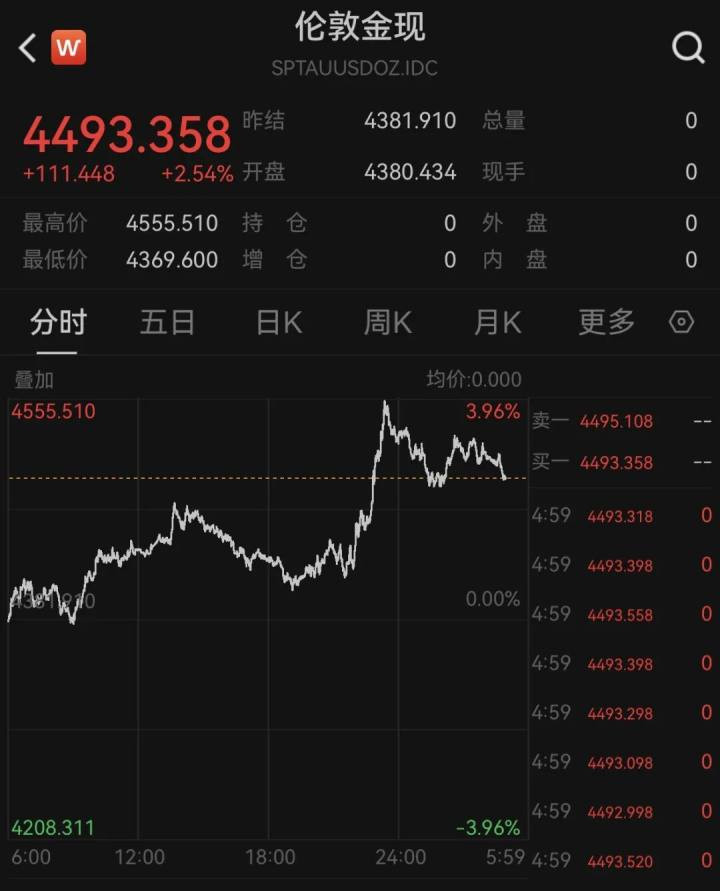 放胆收盘,现货黄金涨2.5%,报4493.36好意思元/盎司;现货白银涨2.4%,报69.73好意思元/盎司。