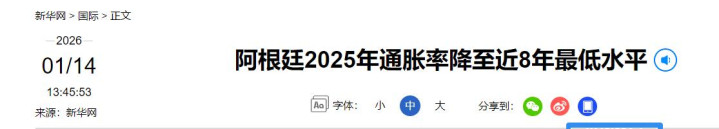更要津的是,这份亮眼的东谈主均GDP数据,和阿根廷庸俗东谈主的生活半毛钱相干都莫得。把柄阿根廷国度统计与东谈主口普查谋划所的数据,2025年该国通胀率诚然降到了31.5%,创下近8年最低,但这仅仅和2024年117.8%的恶性通胀比拟的“逾越”,放在全球来看,依旧是高得离谱的水平。