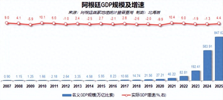 阿根廷国度统计局的最新年度讨教表示,2025年该国样式国内出产总值(GDP)达到6812亿好意思元,同比增长6.9%;按官方平均汇率折算,东谈主均GDP高达14686好意思元。