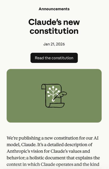 本年 1 月,Anthropic 发布了一份长达 80 页的文献,被称为 Claude 的「宪法」。媒体脸色的是文献末尾对于 AI 闭塞的忖度——虽然,雇主 Dario Amodei 也话里话外「线路」这小数。