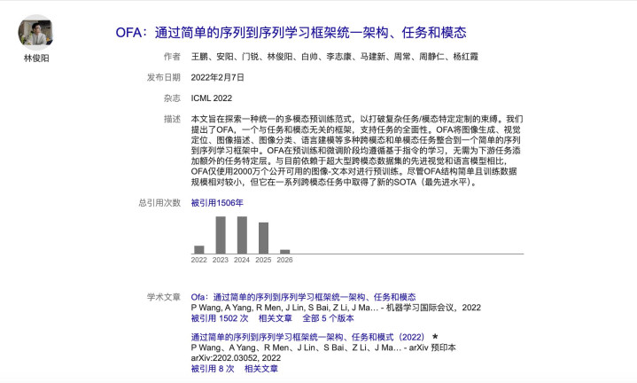 从林俊旸的学术轨迹中,也能看到一种颠倒讲话学的议论作风。他主导的 OFA(One For All),2022 年发表于机器学习范畴的顶级会议 ICML,于今被援用近 1500 次。这个使命的中枢想路不是为每个任务搭专用有计划,而是用一个弥散通用的序列到序列框架,把图像生成、视觉定位、图像面容、文天职类等跨模态任务和洽起来。
