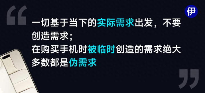 我呢也给大师追念了一个实用的教养:“一切基于当下的履行需求开赴,不要创造需求;在购买手机时被创造的临时需求绝大巨额齐是伪需求”